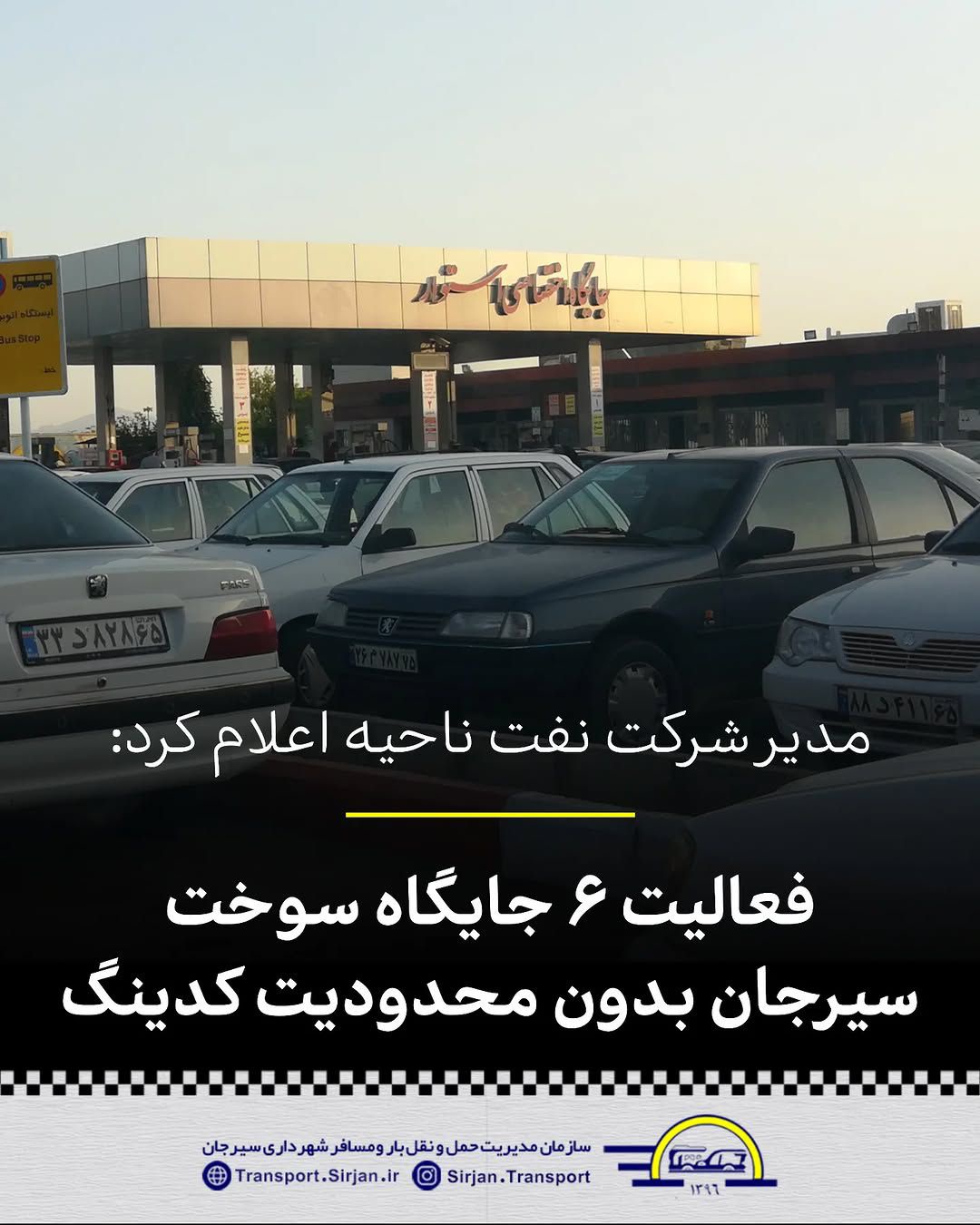 مدیر شرکت پخش فرآورده های نفتی ناحیه سیرجان از فعالیت ۶ جایگاه سوخت بدون محدودیت طرح کدینگ در این شهرستان خبر داد.