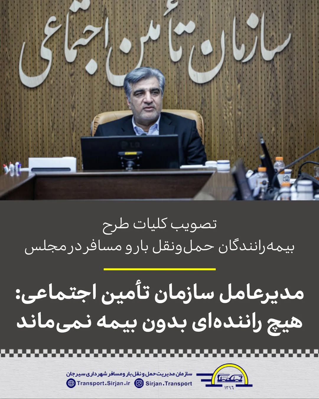 مدیرعامل سازمان تأمین اجتماعی در جلسه بررسی طرح اصلاح قانون بیمه رانندگان در مجلس شورای اسلامی گفت: هدف اصلی این طرح این است که هیچ رانندهای در کشور بدون پوشش بیمه تأمین اجتماعی باقی نماند.