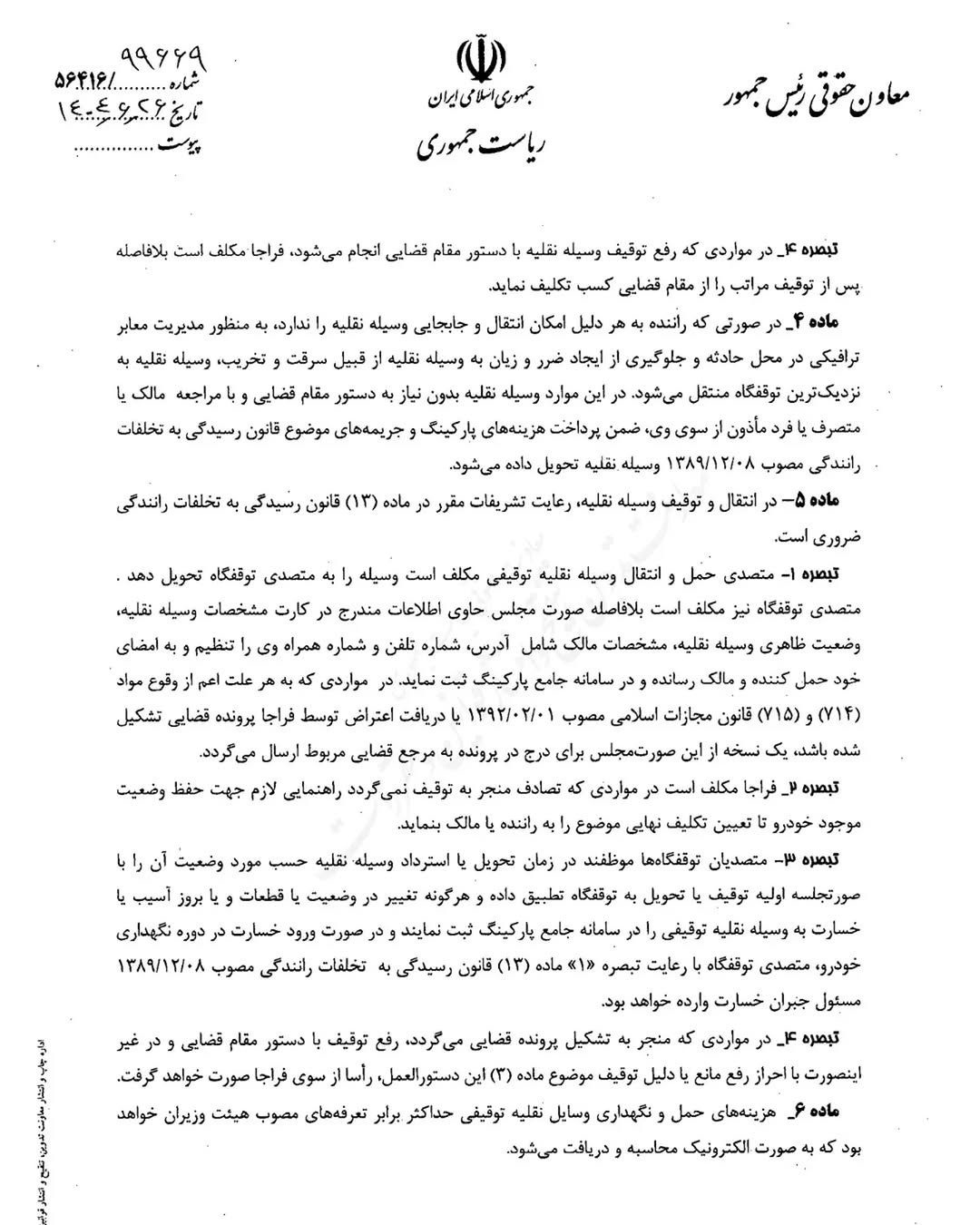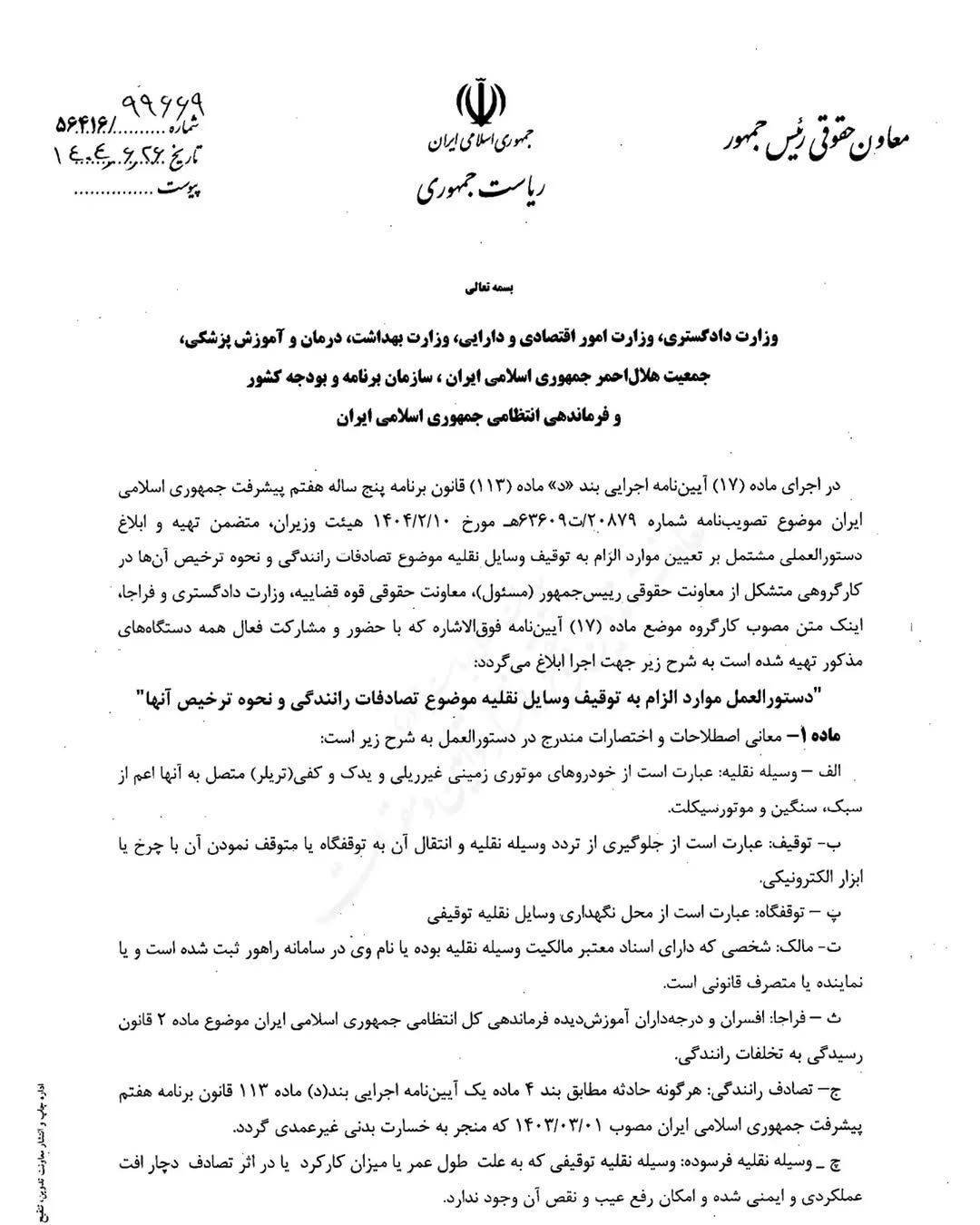 معاونت حقوقی ریاستجمهوری، توقیف خودرو در تصادفات منجر به جرح به طور کلی انجام نمیشود و این اقدام تنها در موارد خاص و قانونی مجاز است.