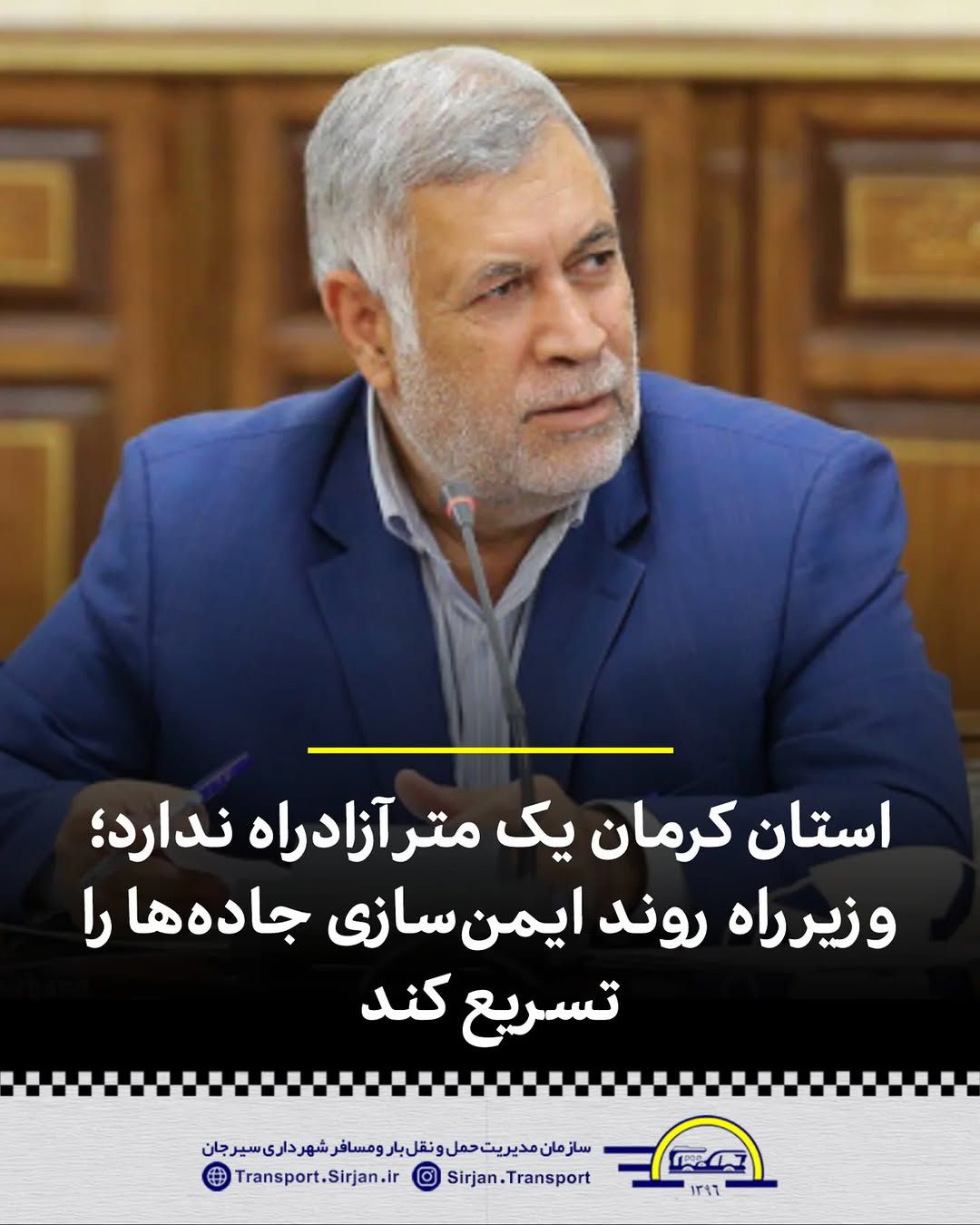 نماینده مردم کرمان و راور در مجلس، با بیان اینکه استان کرمان یک متر آزاد راه ندارد از وزیر راه و شهرسازی خواست تا روند ایمن‌سازی جاده‌های این استان را تسریع کند.