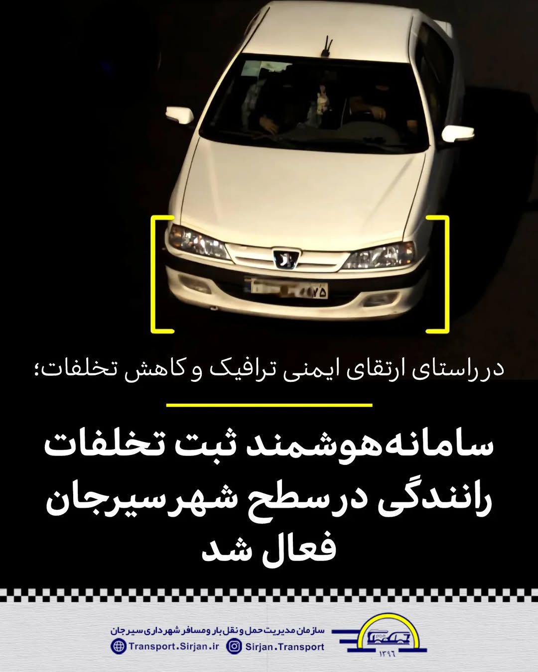 به گزارش مدیریت ارتباطات و امور بینالملل شهرداری سیرجان به موجب این طرح، دوربینهای نظارتی و پلاک خوان نصب شده در معابر اصلی شهر به طور لحظهای و به صورت مستمر، تخلفات مختلف رانندگی نظیر سرعت غیرمجاز، عبور از چراغ قرمز ورود کامیونها به معابر ممنوعه، عدم توجه به معاینه فنی و پارک دوبله و پارک در محل توقف ممنوع و سایر تخلفات رانندگی را ثبت کرده و نسبت به اعمال جریمه برای رانندگان متخلف اقدام خواهند کرد.
